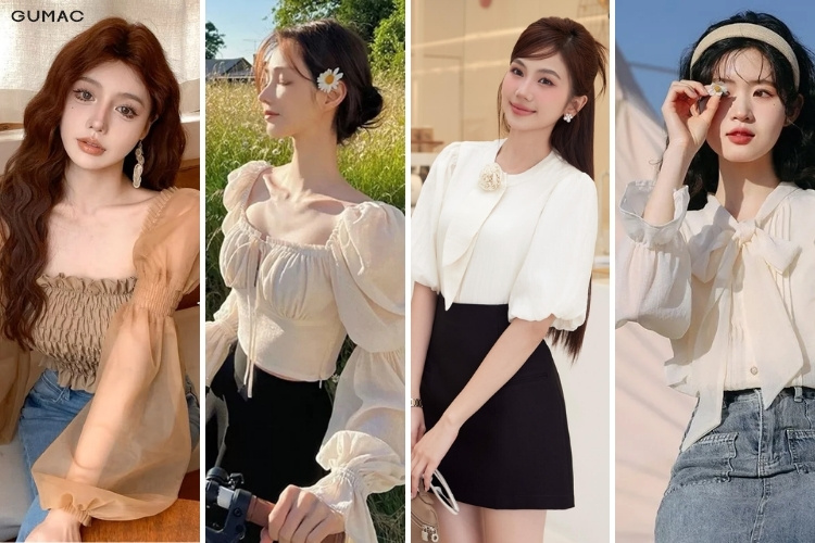 * Áo sơ mi tay phồng bèo nhún: Nữ tính và duyên dáng, phù hợp cho các buổi dạo phố hay gặp gỡ bạn bè.