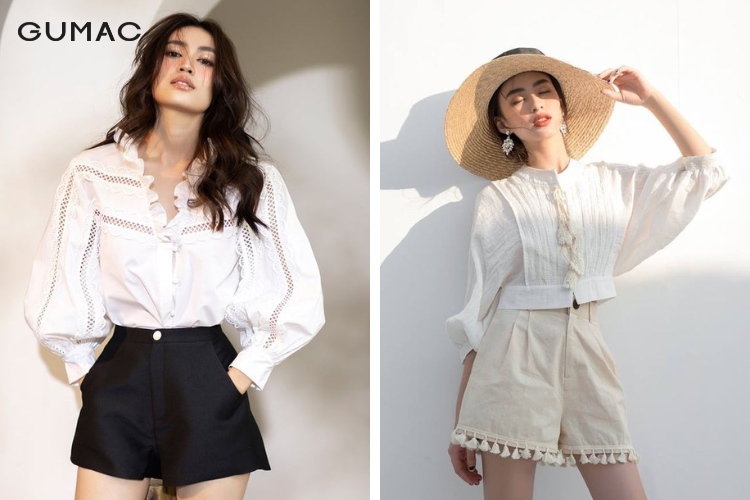 Phối áo sơ mi tay phồng với quần short là cách tạo nên phong cách trẻ trung, hiện đại: