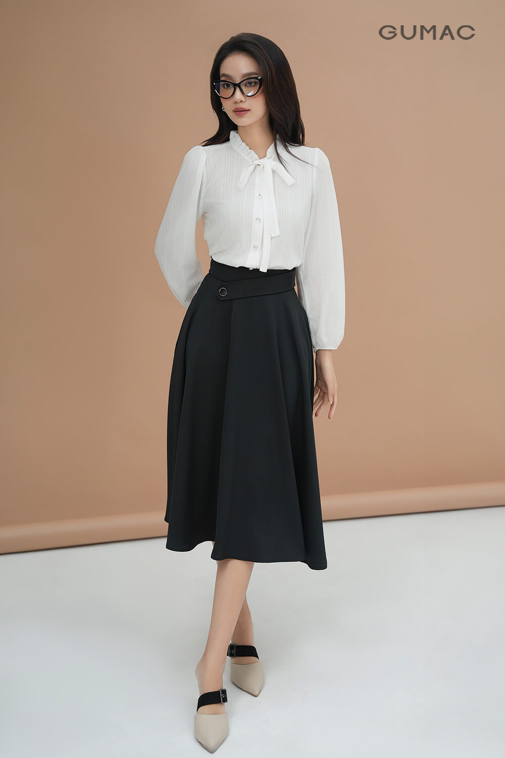 * Chân Váy Xòe: Phối áo sơ mi đuôi tôm với chân váy xòe sẽ mang lại vẻ ngọt ngào, nữ tính. Đây là phong cách phù hợp cho những buổi tiệc nhẹ hoặc gặp gỡ thân mật.