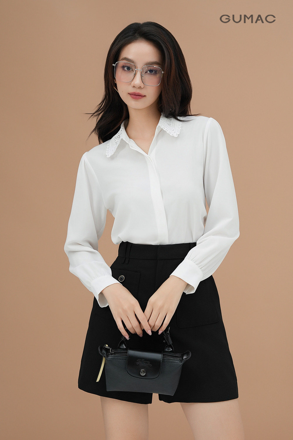 Với cách phối đồ theo phong cách Hàn Quốc, áo sơ mi đuôi tôm được kết hợp cùng quần hoặc chân váy tone màu pastel hoặc trung tính, mang lại vẻ ngoài ngọt ngào và trẻ trung.
