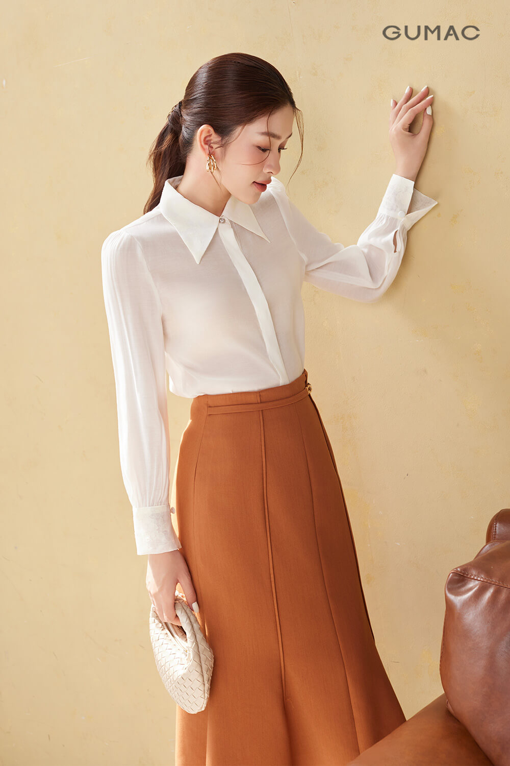 * Chân Váy Midi: Áo sơ mi đuôi tôm và chân váy midi là bộ đôi tạo nên vẻ ngoài nữ tính, dịu dàng. Đây là set đồ lý tưởng cho các buổi dạo phố, mang đến phong cách thanh thoát và nhẹ nhàng.